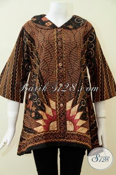 Busana Batik Tulis Mewah Ukuran Jumbo Untuk Wanita Berbadan Gemuk, Blus Batik Klasik Desain Menarik Bisa untuk Kerja Dan Kondangan [BLS1909T-XXL]
