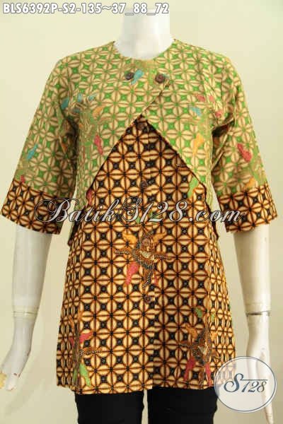 Busana Batik Wanita Buatan Solo, Baju Blus Kombinasi Rompi Trend Mode Terkini Untuk Penampilan Lebih Istimewa Hanya 100 Ribuan [BLS6392P-S]