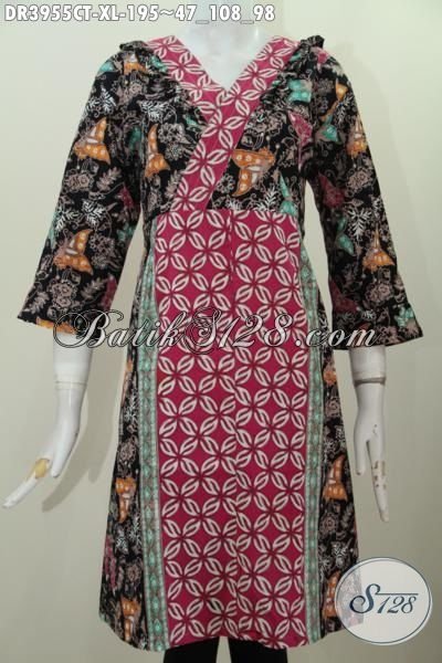 Busana Batik Wanita Dewasa Motif Kombinasi Dengan Model Terkini Yang Lebih Mewah Dan Trendy, Pakaian Batik Dress Istimewa Cocok Untuk Jalan-Jalan Dan Kerja [DR3955CT-XL]