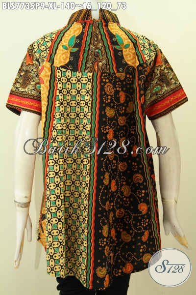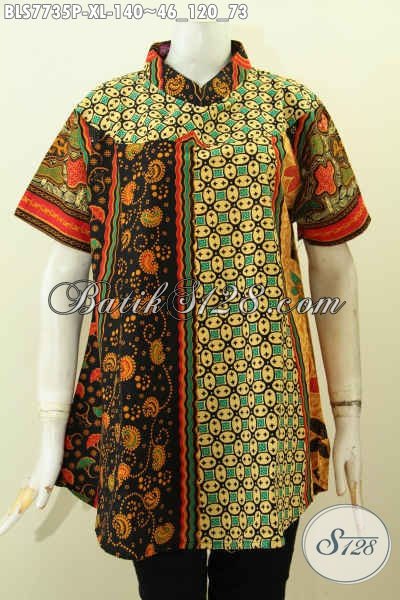 Busana Batik Wanita Dewasa Nan ELegan, Pakaian Batik Berkelas Buatan Solo Untuk Kerja Dan Acara Resmi, Bahan Halus Proses Printing Harga 140 Ribu [BLS7735P-XL]