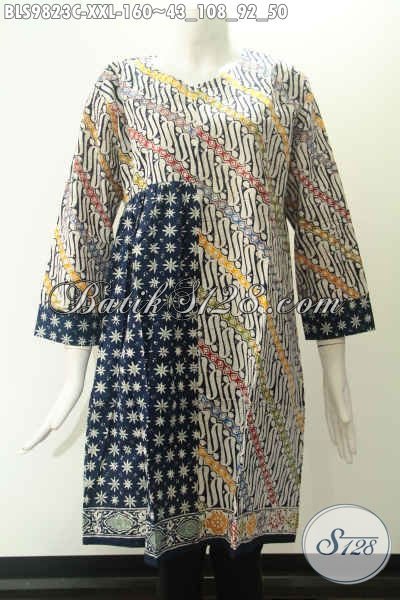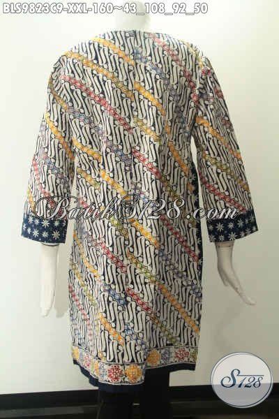 Busana Batik Wanita Dual Motif Modern Klasik, Blouse Lengan 7/8 Desain Tanpa Kerah Pakai Resleting Jepang, Pas Banget Untuk Acara Resmi Maupun Kondangan Tampil Berkelas [BLS9823C-XXL]