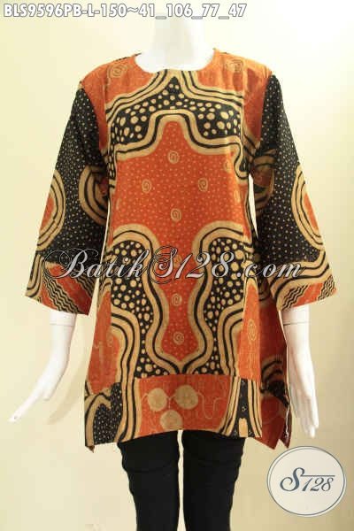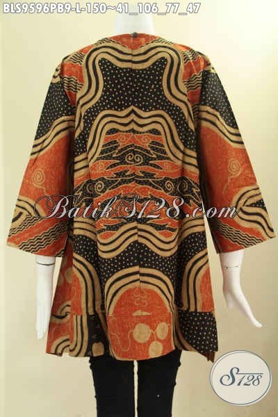 Busana Batik Wanita Karir Motif Bagus Bahan Halus Nyaman Di Pakai, Blouse Batik Solo Asli Model A Lengan 7/8 Tanpa Krah Pakai Kancing Belakang, Tampil Cantik Dan Trendy [BLS9596PB-L]