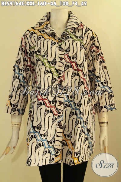 Busana Batik Wanita Motif Elegan Klasik, Blouse Batik Solo Jawa Tengah Nan Berkelas Desain Kerah Proses Cap, Spesial Untuk Wanita Gemuk [BLS9164C-XXL]