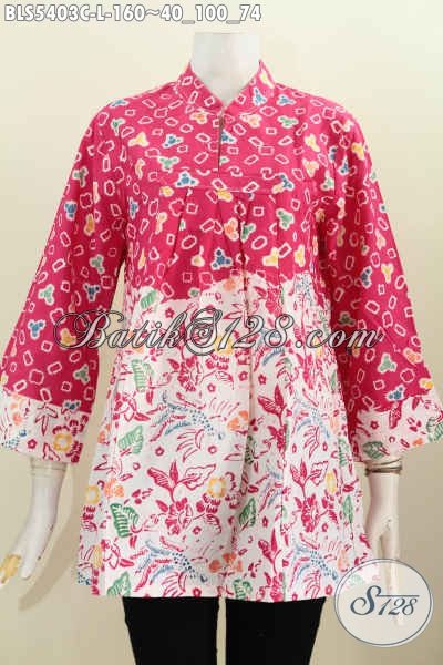 Busana Batik Wanita Muda Dan Dewasa, Hadir Dengan Warna Merah Dan Motif Kombinasi Proses Cap Bahan Halus Model Kerah Shanghai Harga 160K, Cocok Buat Hangout Dan Kerja [BLS5403C-L]