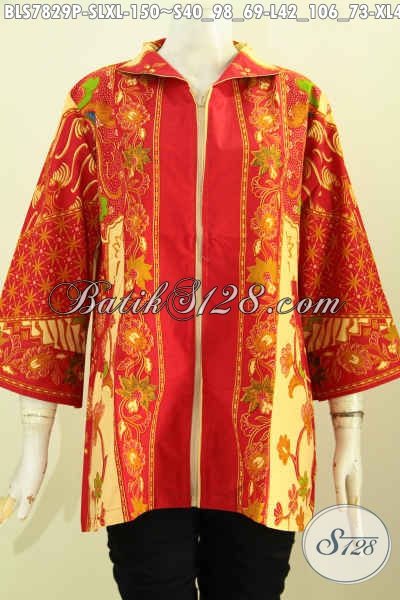 Busana Batik Wanita Muda Dan Dewasa Yang Bikin Penampilan Beda Dan Berkelas, Blus Batik Resleting Depan Motif Klasik Proses Printing Hanya 150 Ribu [BLS7829P-L]