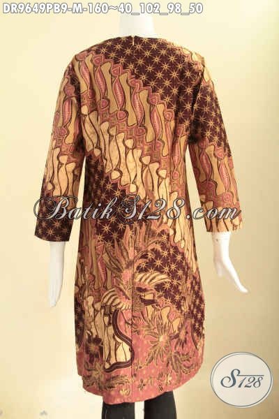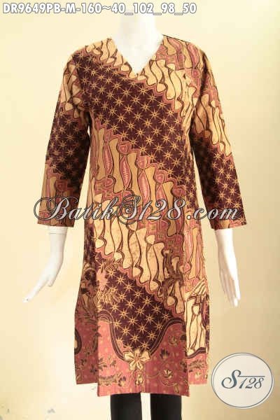 Busana Batik Wanita Nan Berkelas Untuk Kerja Dan Acara Resmi, Dress Batik Istimewa Motif Elegan Klasik Model Resleitng Belakang Lengan Panjang, Tampil Lebih Mempesona [DR9649PB-M]