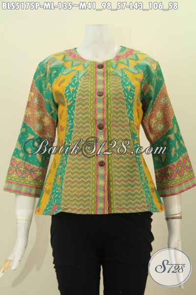 Busana Batik Wanita Terbaru, Blus Batik Tanpa Krah, Pakaian Batik Modern Bahan Halus Motif Bagus Proses Printing Hanya 130 Ribuan [BLS5175P-M , L]