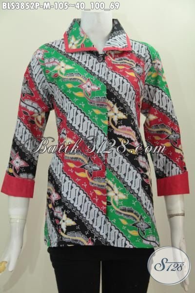 Busana Batik Wanita Terbaru Motif Parang Bunga Model Plisir, Baju Batik Berkelas Proses Printing Kwalitas Halus Harga Murmer Yang Mampu Membuat Penampilan Jadi Istimewa [BLS3852P-M]
