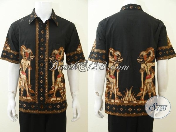 Busana Batik Wayang Motif Hanoman, Baju Batik Hitam Lengan Pendek Proses Tulis Soga Lebih Mewah Dan Lebih Berkelas [LD3001TS-L]