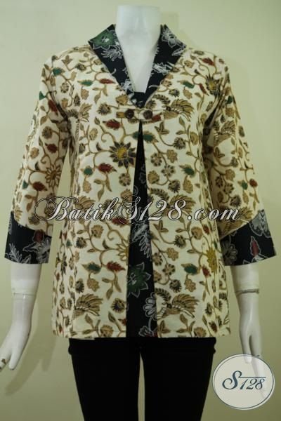 Busana Blus Batik Desain Terbaru Kombinasi Warna Cream Dan Hitam, Baju Batik Lengan Tuju Perdelapan Pas Buat Kerja Dan Acara Resmi [BLS2345BT-S]
