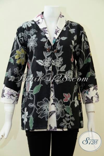 Busana Blus Batik Hitam Daleman Putih Berpadu Aneka Motif Trendy Yang Terlihat Semakin Mewah Berkelas, Baju Batik Tiga Perempat Untuk Ke Kantor [BLS1881BT-M]