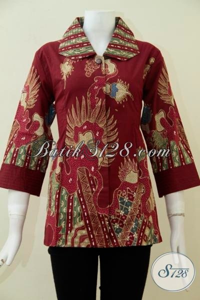 Busana Blus Batik Keren Warna Merah Model Kerah Lebar, Baju Batik Tulis Murah Dengan Kwalitas Istimewa Cocok Untuk Acara Resmi [BLS1829T-M]