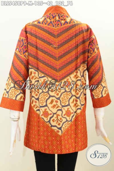 Busana Blus Batik Motif Kipas, Produk Pakaian Batik Istimewa Model Tanpa Kerah Proses Printing Tampil Berkelas Dengan Harga 135K [BLS5458P-M]