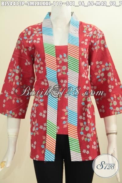 Busana Blus Batik Solo Halus Kwalitas Halus Dan Istimewa, Pakaian Batik Modern Terkini Model Kutu Baru Dengan Aksen Garis Nan Mewah Dan Berkelas Proses Printing [BLS4413P-S , M , L , XL , XXL]