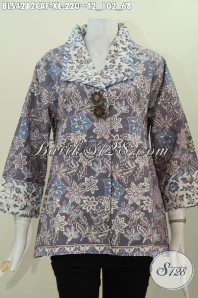 Busana Blus Wanita Dewasa Motif Modern Berbahan Halus Proses Cap Dengan Warna Alami, Pakaian Batik Kerja Dan Kondangan Daleman Full Furing Tampil Lebih Percaya Diri [BLS4212CAF-XL]