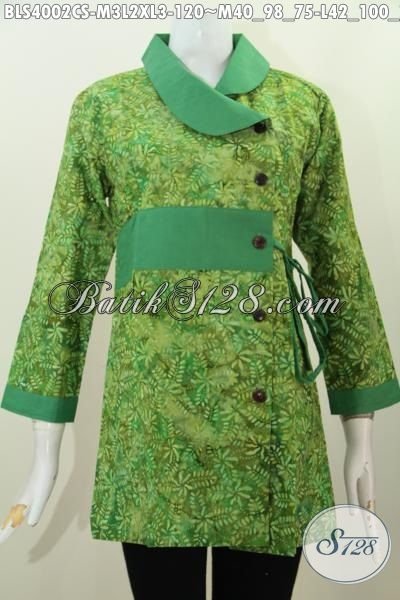 Busana Blus Warna Hijau Motif Trendy Proses Cap Smoke, Baju Batik Kerah Polos Desain Terbaru Lebih Mewah Dan Keren Buat Kerja Dan Pesta [BLS4002CS-M , L , XL]