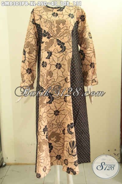 Busana Gamis Batik 2 Model A Untuk Wanita Dewasa Tampil Istimewa, Pakaian Batik Musli Cewek 2 Motif Proses Printing Cabut Di Lengkapi Kancing Depan Hanya 250K [GM8303PB-XL]