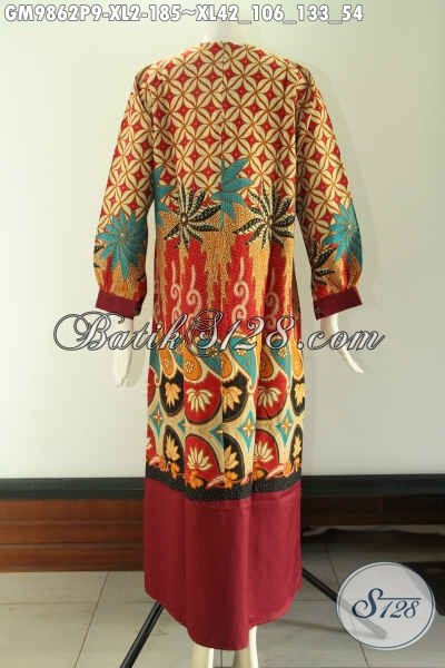 Busana Gamis Wanita Masa Kini Hadir Dengan Bahan Batik Berpadu Motif Modern Nan Elegan, Tren Busana Syar’i Wanita Berhijab Untuk Acara Santai Dan Resmi Tampil Terlihat Berkelas [DR9862P-XL]