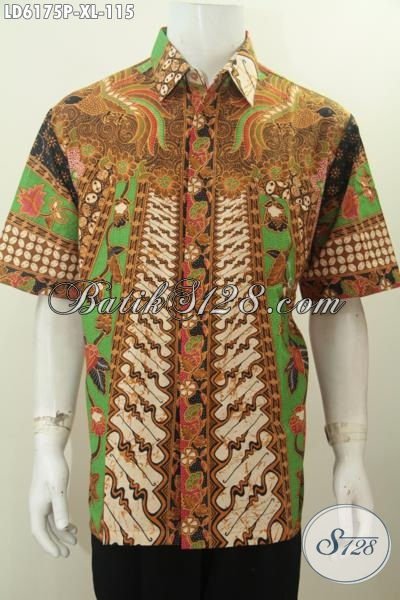 Busana Kerja Bahan Batik Desain Hem Lengan Pendek Nan Istimewa, Baju Batik Keren Dan Trendy Bahan Adem Motif Sinaran Yang Membuat Lelaki Terlihat Gagah Dan Berkelas [LD6175P-XXL]