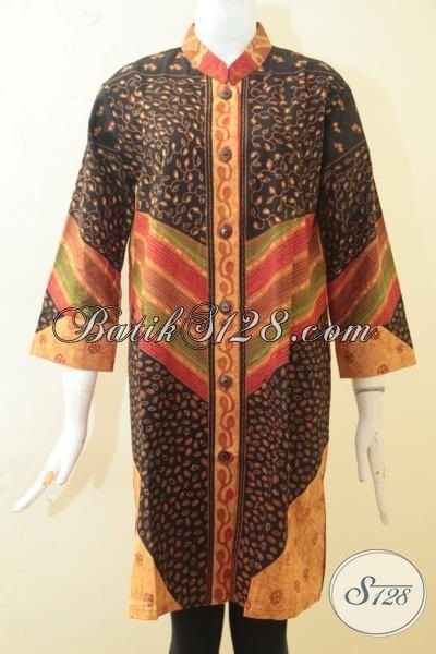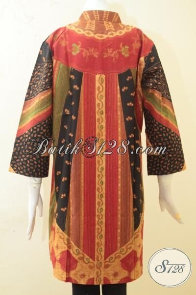 Busana Kerja Bahan Batik Kombinasi Tulis Desain Kerah Shanghai, Baju Batik Mewah Dan Modis Harga Terjangkau [BLS3411BTA-L]