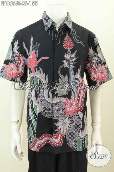Busana Kerja Batik Hitam Lengan Pendek Istimewa, Pakaian Batik Solo Berkelas Bikin Pria Terlihat Gagah [LD8884T-XL]