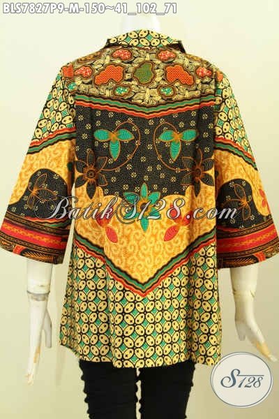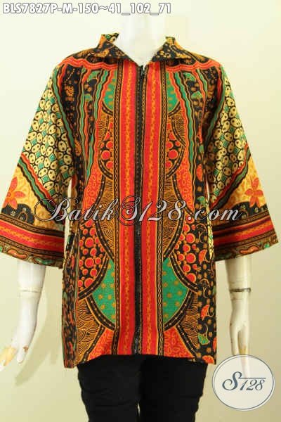 Busana Modis Dan Elegan, Baju Batik Atasan Wanita Karir, Blus Batik Solo Printing Motif Sinaran Model Resleting Depan, Tampil Makin Gaya [BLS7827P-M]