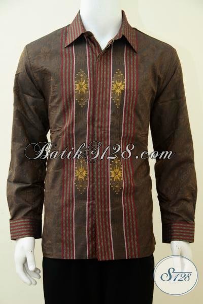 Busana Tenun Warna Coklat Motif Keren, Kemeja Tenun Full Furing Model Lengan Panjang Laki-Laki Tampil Lebih Elegan Dan Berwibawa [LP2677NF-L]
