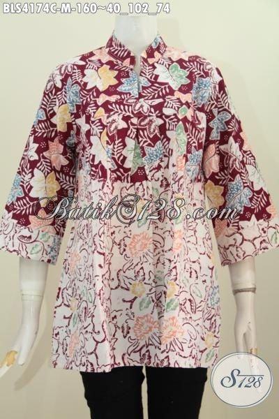 Busana Trendy Buat Wanita Muda Tampil Makin Modis, Baju Blus Batik Cap Dua Motif Dan Warna Model Kerah Shanghai Mewah Dengan Harga Terjangkau [BLS4174-M]