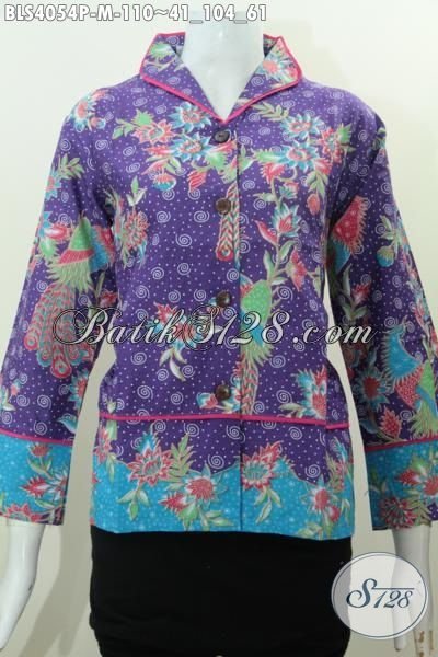 Busana Wanita Bahan Batik Printing Warna Ungu Motif Terkini Desain Mewah Kerah Langsung Plisir Yang Banyak Di Cari Wanita Karir [BLS4054P-M]