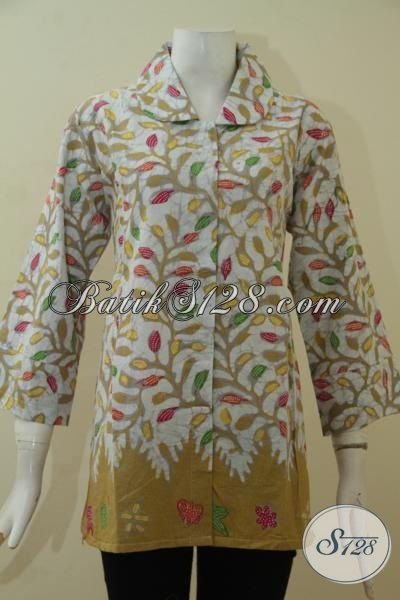 Butik Batik Jual Online Blus Batik Modern Motif Unik Dan Keren, Busana Batik Perempuan Dewasa Size XL Proses Kombinasi Tulis Nan Halus [BLS3468BT-XL]