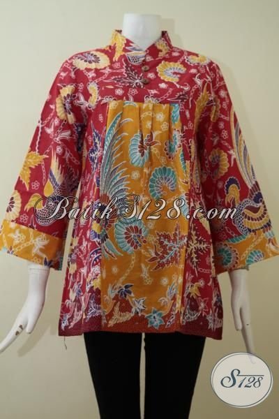 Butik Batik Online Jual Pakaian Blus Batik Merah Kombinasi Kuning Berpadu Motif Keren Yang Memberi Kesan Mewah Berkelas, Baju Batik Solo Proses Print Harga Murmer [BLS2186P-L]