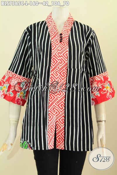 Butik Batik Online, Sedia Baju Batik Wanita Cantik, Blus Kenzi Nan Keren Dan Modis Motif Terkini Proses Cap Di Lengkapi Kancing Banyak, Di Jual Online 160K [BLS7565C-L]