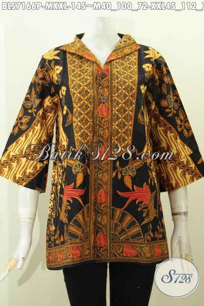 Butik Batik Online Sedia Blus Kerah Langsung Saku Kanan Kiri Kwalitas Istimewa Bahan Adem Proses Printing, Cocok Untuk Kerja Dan Acara Resmi [BLS7166P-M , XXL]