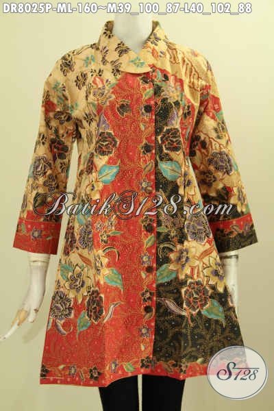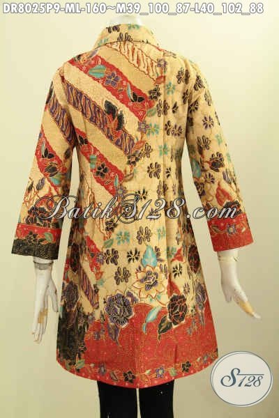 Butik Batik Online Sedia Dress Krah Miring Nan Modis Berbahan Halus Berpadu Motif Trendy Proses Printing, Pas Buat Ke Kantor [DR8025P-L]
