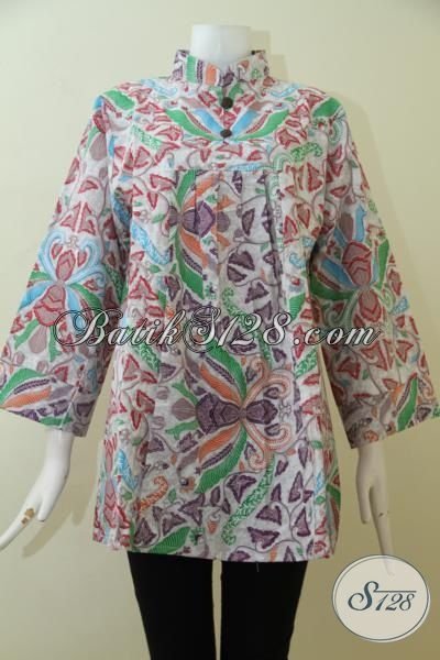 Butik Batik Solo Online Jual Blus Batik Keren Harga Murah, Busana Batik Berkelas Proses Print Waita Tampil Lebih Cantik Dan Trendy [BLS2493P-XXL]