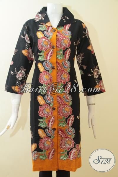 Butik Online Jual Dres Batik Bagus Warna hitam Kombinasi Kuning Motif bunga, Pakaian Batik Keren Dan Elegan Untuk Cewek Masa Kini size Jumbo [DR2689CT-XXL]