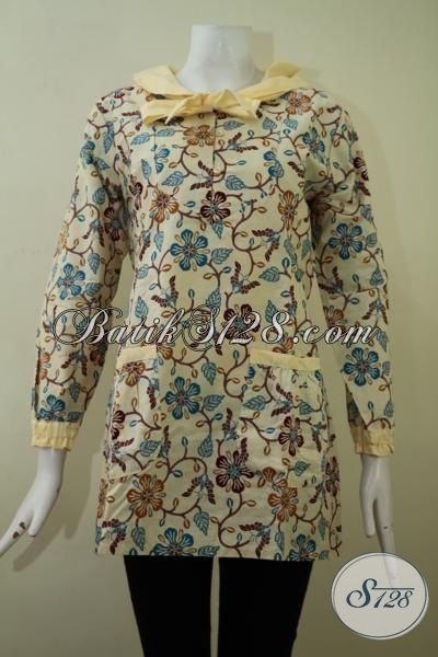 Butik Online Sedia Busana Batik Produk Solo, Baju Batik Blus Keren Warna Kuning Berpadu Motif Bunga Cocok Untuk Wanita Muda Dan Remaja Putri [BLS2227P-M]