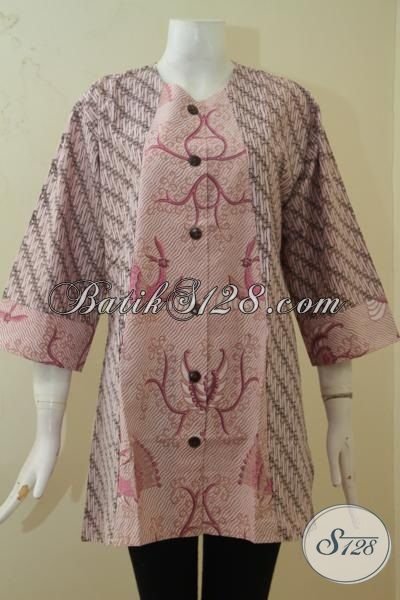 Butik Online Terkenal Jual Blus Batik Khusus Wanita Gemuk, Busana Batik Desain Istimewa Dual Motif, Baju Batik Print Size XXL Untuk Kerja [BLS3383P-XXL]