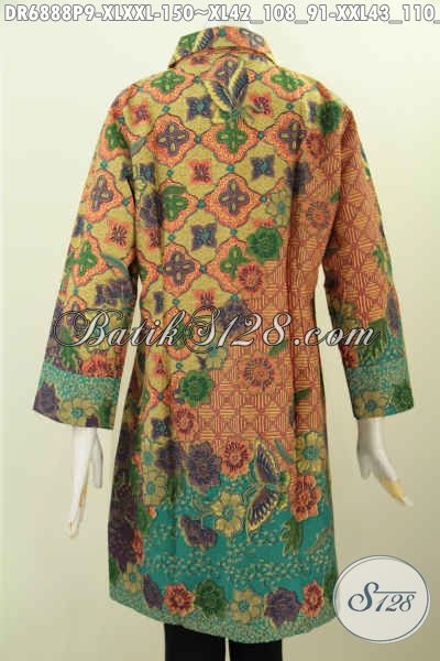 Contoh Baju Batik Kerah Miring Wanita, Dress Batik Elegan Motif Bagus Proses Printing Untuk Kerja Dan Acara Formal [DR6888P-XL , XXL]
