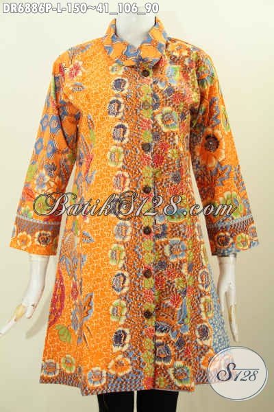 Contoh Baju Batik Wanita Terbaru, Busana Dress Kerah Miring Untuk Seragam Kerja Dan Acara Resmi Wanita Masa Kini Tampil Lebih Bergaya [DR6886P-L]