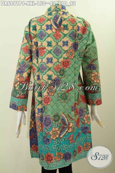 Contoh Model Baju Batik Wanita Terbaru 2017, Busana Dress Kerah Miring Motif Elegan Proses Printing Bahan Adem Nyaman Di Pakai Di Jual Online 150 Ribu [DR6891P-XXL]