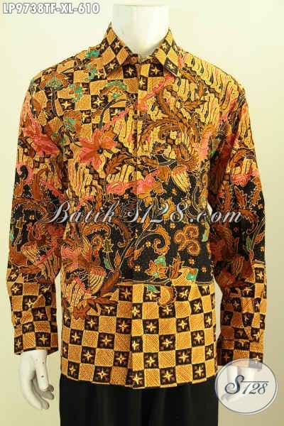 Desain Baju Batik Pria Lengan Panjang Premium, Pakaian Batik Tulis Full Furing Berkelas Kwalitas Istimewa Motif Klasik Tulis Asli Harga 610K [LP9738TF-XL]