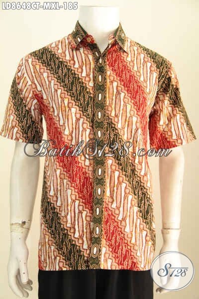 Desain Pakaian Batik Cowok Keren, Pakaian Batik Modis Bahan Halus Motif Unik Proses Cap Tulis, Menunjang Penampilan Lebih Gaya [LD8648CT-M , XL]