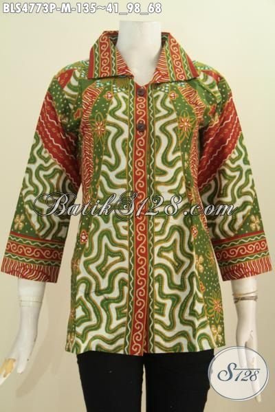 Di Jual Online Baju Blus Klasik Motif Sinaran, Pakaian Batik Halus Model Kerah Kotak Kwalitas Halus Khas Jawa Tengah Yang Membuat Wanita Terlihat Elegan Berkelas [BLS4773P-M]
