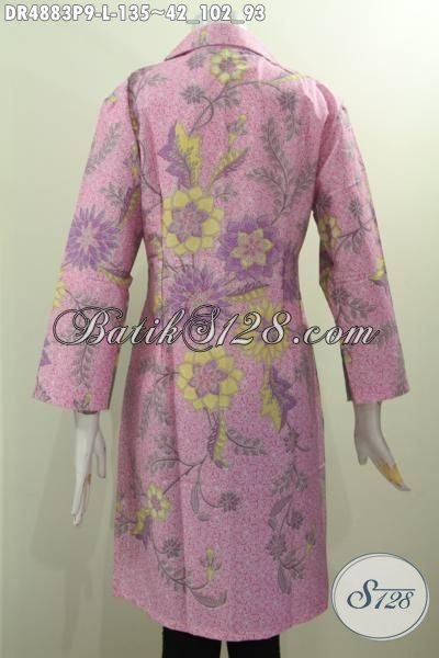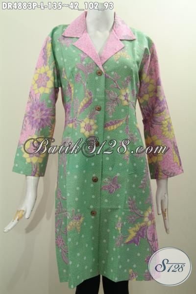 Di Jual Online Dress Istimewa Model Kerah Safari, Busana Batik Formal Buatan Solo Berbahan Istimewa Proses Printing Kombinasi Warna Pagi Sore [DR4883P-L]