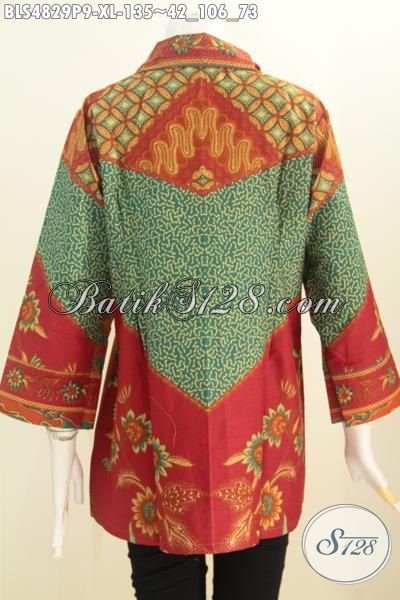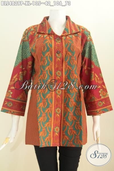 Di Jual Online Produk Busana Blus Kerah Kotak Motif Bagus Proses Printing, Pakaian Batik Wanita Desain Elegan Bahan Adem Lengan Tujuh Perdelapan [BLS4829P-XL]