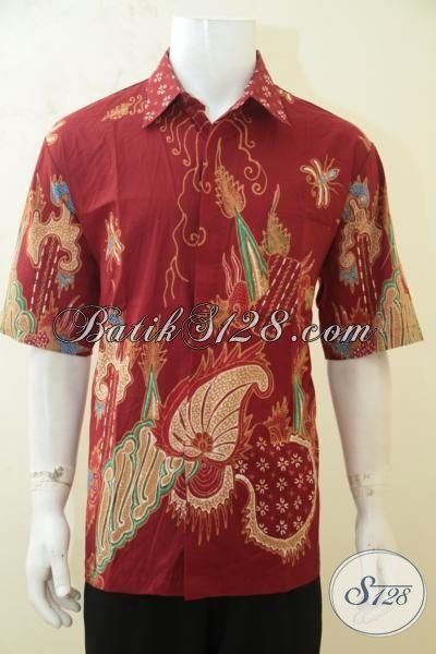 Distro Baju Batik Cowok Online, Sedia Kemeja Batik Lengan Pendek Warna Merah Motif Terkini, Batik Jawa Tengah Lelaki Lebih Modis Dan Berkarakter [LD4194T-XL]