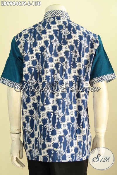 Distro Pakaian Batik Online, Jual Hem Lengan Pendek Modis Kombinasi Kain Polos Berpadu Motif Klasik Proses Cap, Hem Lengan Pendek Keren Tampil Gagah Dan Gaya [LD9934CJ-L]