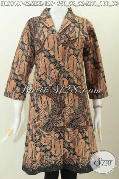 Dres Batik Elegan Klasik Bahan Halus Adem Nyaman Di Pakai, Pakaian Batik Kerah Langsung Proses Printing Buatan Solo Harga Terjangkau [DR5943P-S , M , L , XL]