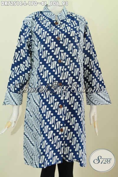 Dress Batik 2 Warna, Baju Batik Elegan Kerah Shanghai, Produk Pakaian Batik Solo Halus Bahan Adem Proses Cap Hargga 100 Ribuan [DR7251C-L]